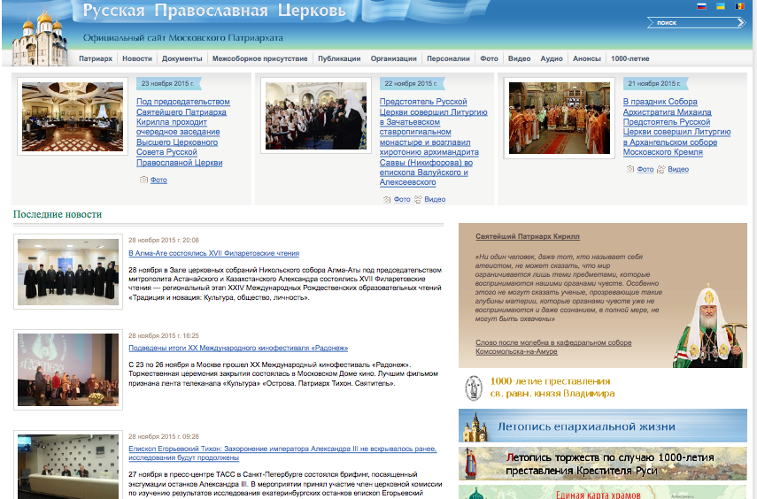 Может это такая наша провинциальность? А на самом-самом главном сайте все совершенно иначе? Заглянем-ка на портал самой Московской Патриархии: